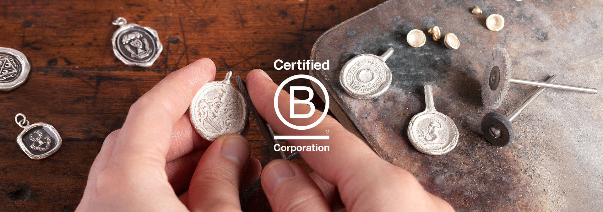 B Corp is an international standard for ethics, transparency, and accountability in business. Companies that are certified to the B Corp standard lead the way in the business community by using business as a force for good. The idea is that through their products and practices, businesses should aspire to not only do no harm, but to benefit all. Becoming a B Corp is hard – the bar is high and the process is rigorous. Recertification confirms these standards continue to be met on an ongoing basis. While there are over 4500 B Corps from over 70 countries and 150 industries, Pyrrha is 1 of only 18 certified B Corps worldwide that manufactures jewelry.