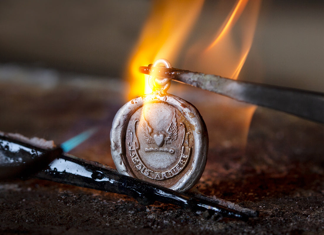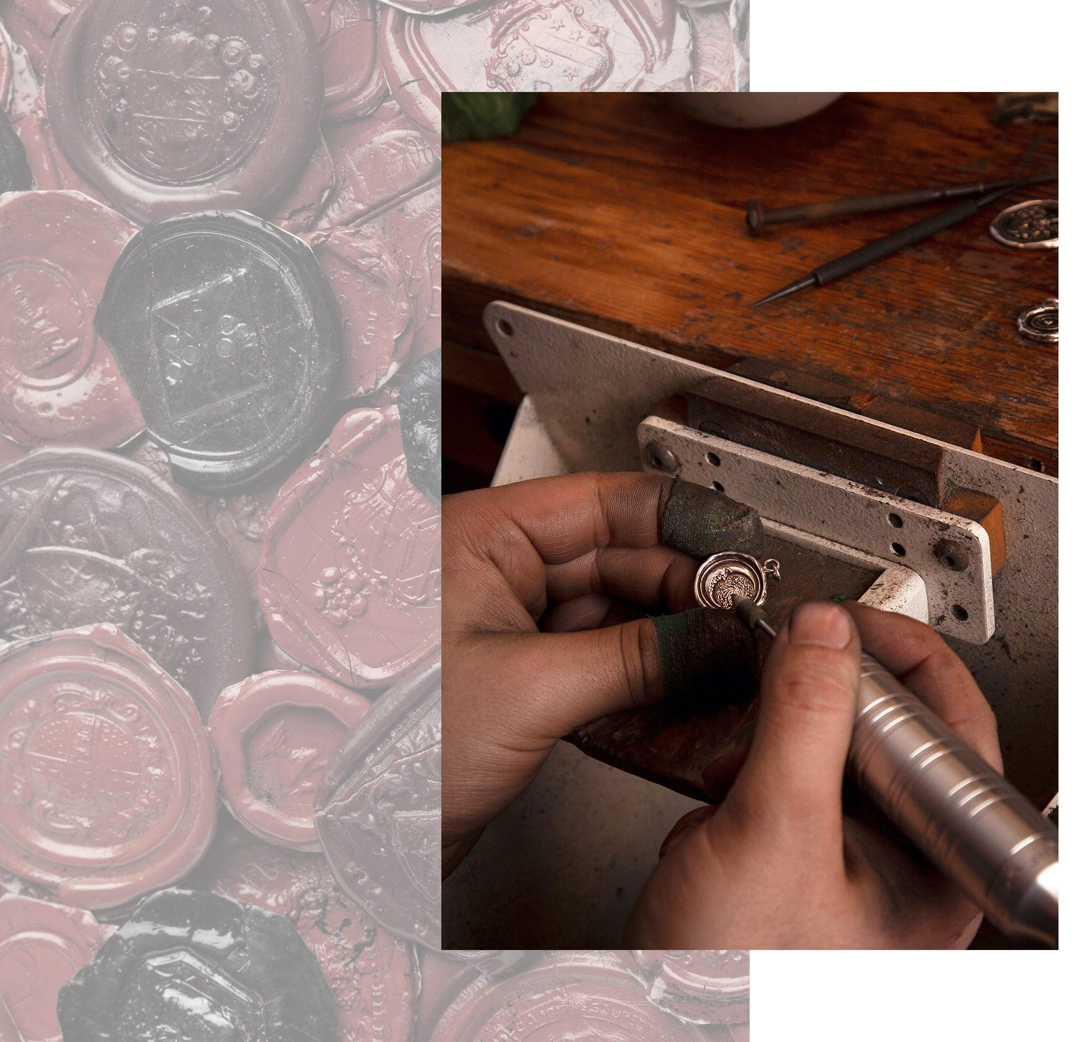 Inspired by a collection of Victorian wax seals we found while digging through a box of old letters at an estate sale, our talismans were born from a desire to give the fragile antique seals new life and permanence. While we design and create all of the imagery for our pieces, we are rooted in that original connection to the past. We celebrate the natural imperfections of our talismans by incorporating original elements like cracked borders from the antique wax seals and proudly show the maker’s hand.