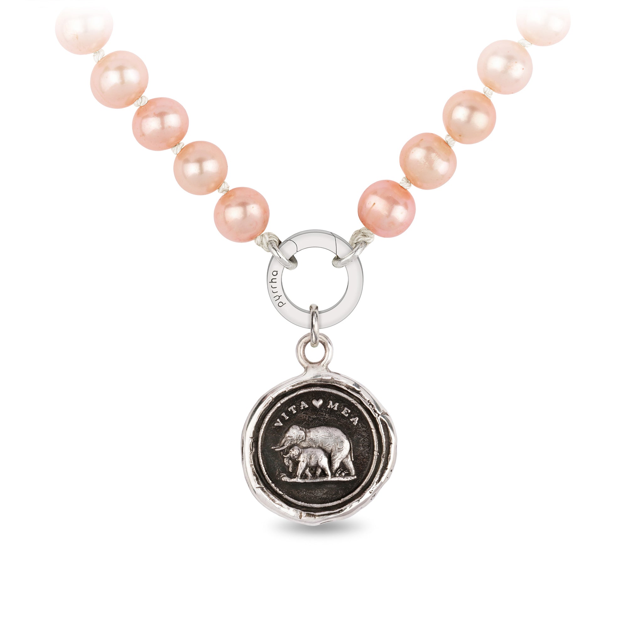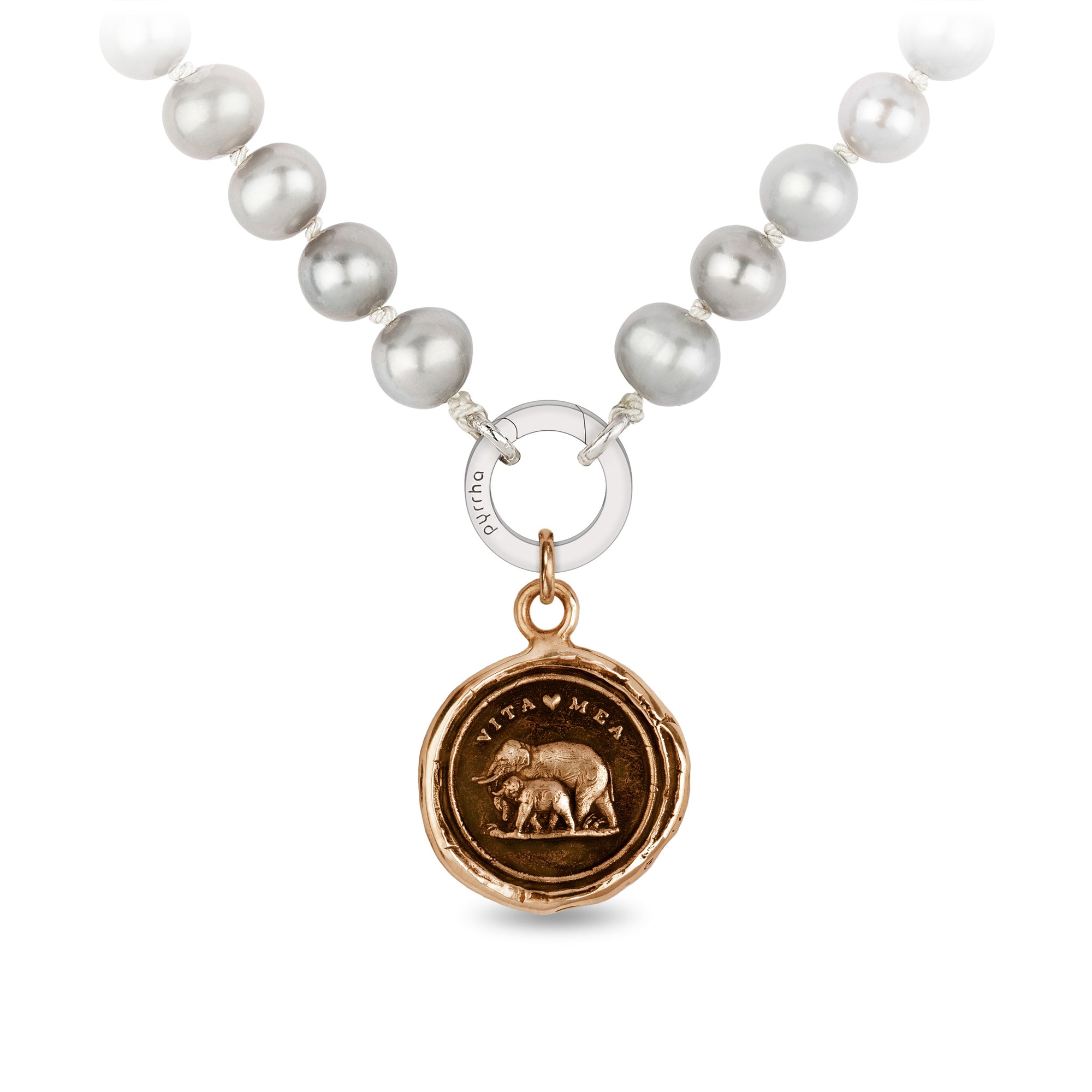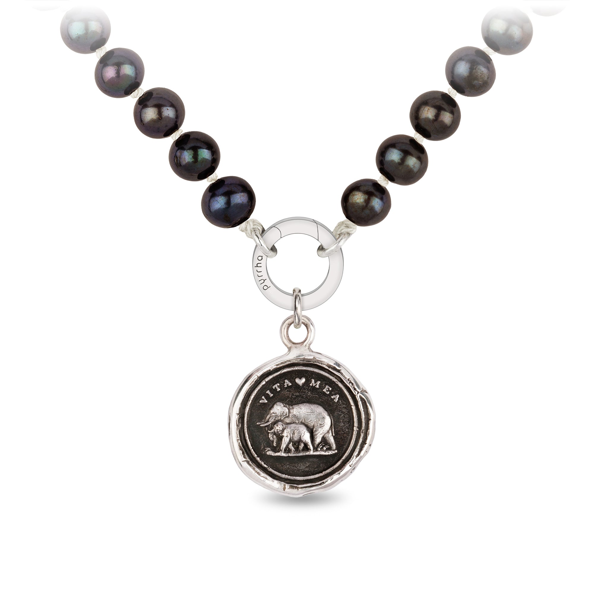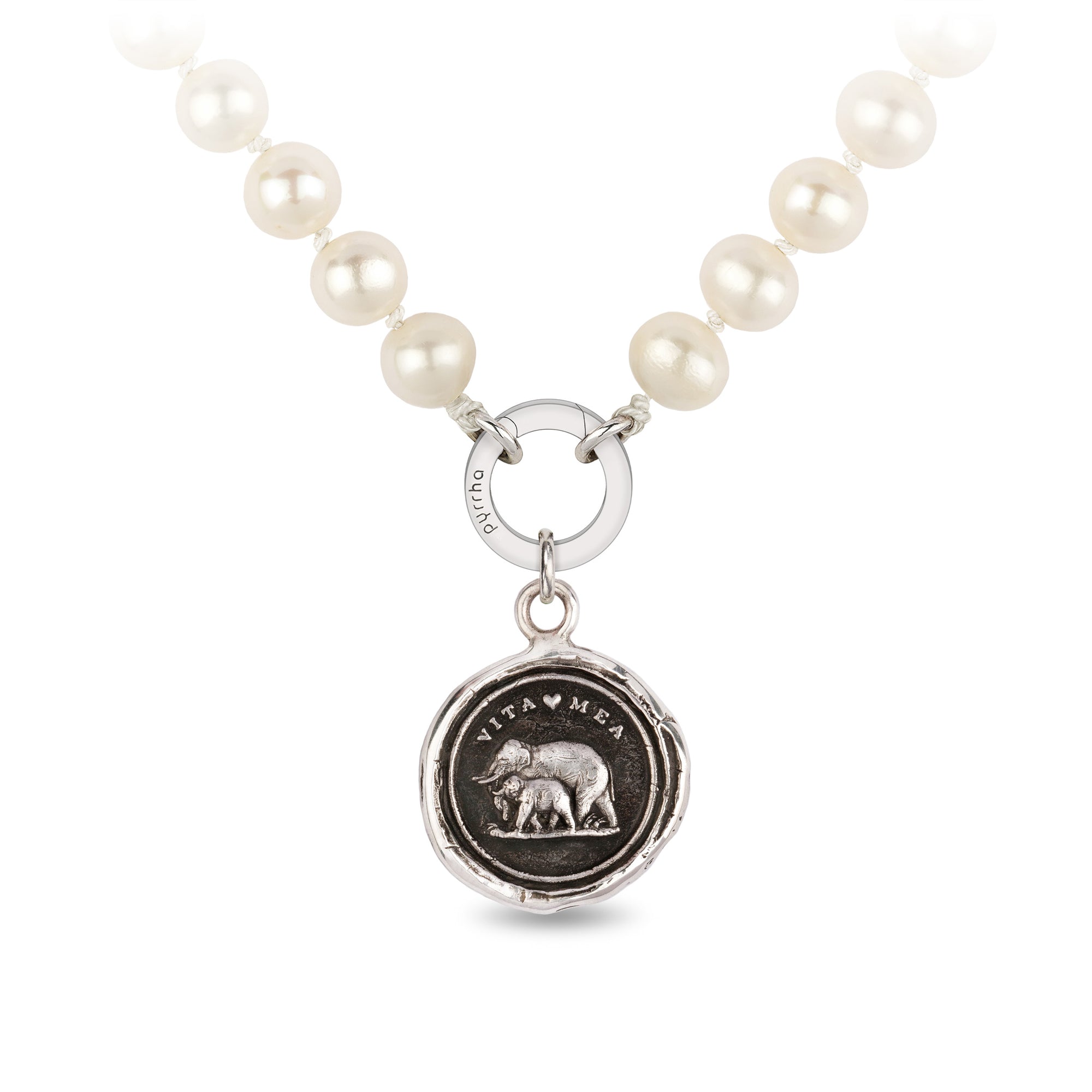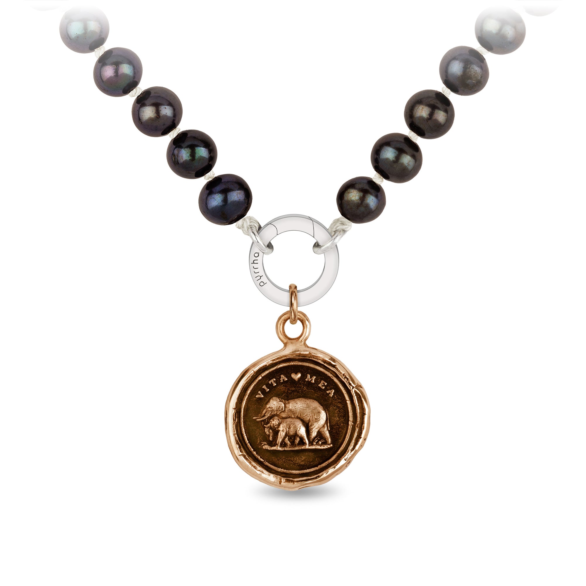 This talisman reads 'Vita Mea' in Latin, which means 'My Life.' The family-focused elephant depicted with its young is symbolic of the strength of the parent-child bond.