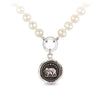- Sterling silver or bronze talisman on a Talisman clip on freshwater pearls